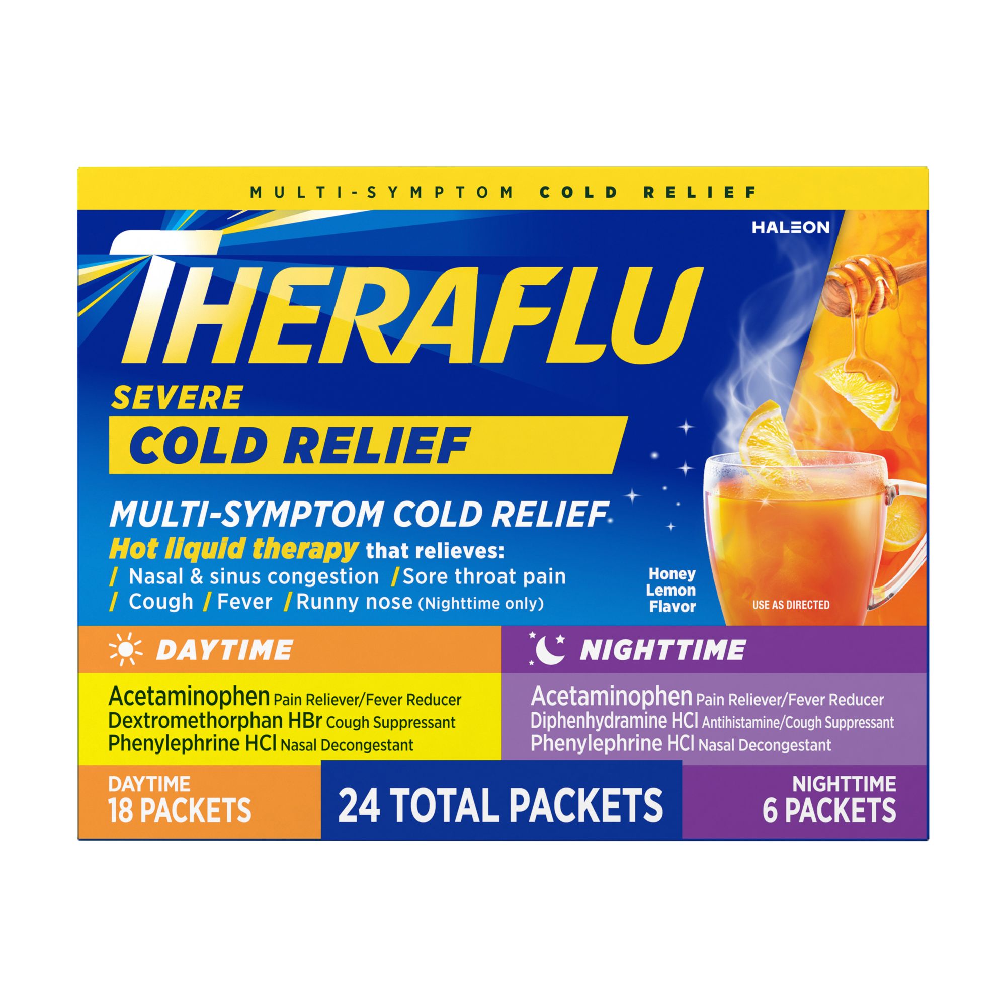 Theraflu Nighttime Severe Cold And Cough Hot Liquid Powder Honey Lemon Infused With Chamomile And White Tea Flavors Cvs Pharmacy
